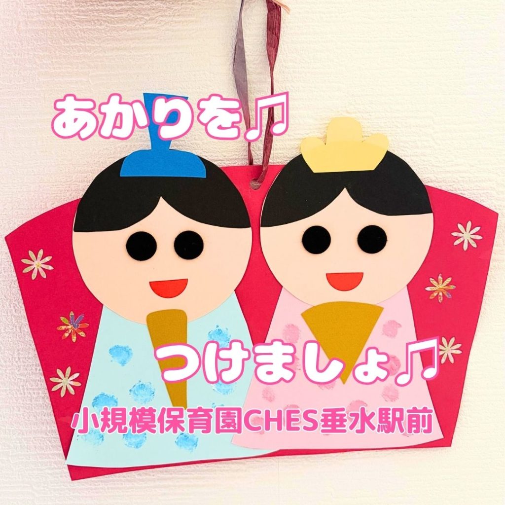 少しずつですが、春の日差しが感じられるようになってきましたね。小規模保育園CHES垂水駅前では、来月の「ひな祭り会」に向けてのムードが高まっています。朝の会では「うれしいひなまつり」の歌を歌い、ひな祭りがテーマの絵本を読んだりしています。