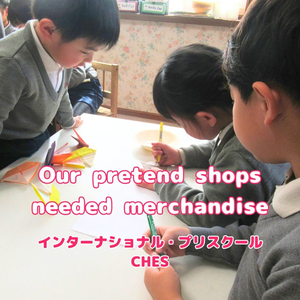 でも、私たちの模擬店には商品が必要だったので、Red FoxとWhite Owlクラスはそれぞれチームに分かれて、違う商品を考えました。折り紙を使って、需要を満たすだけの商品を作りましたが、余りすぎないように注意しました。