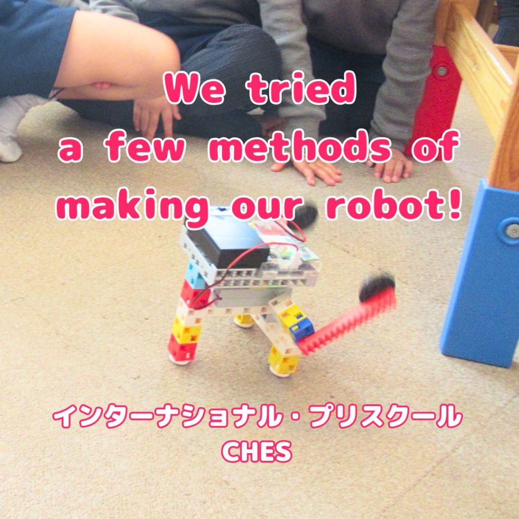 ロボットを思い通りに動かすために、いくつかの方法を試してみました。ほんの少しの部品で、実際に動くものが作れるなんて、本当に驚きでした。