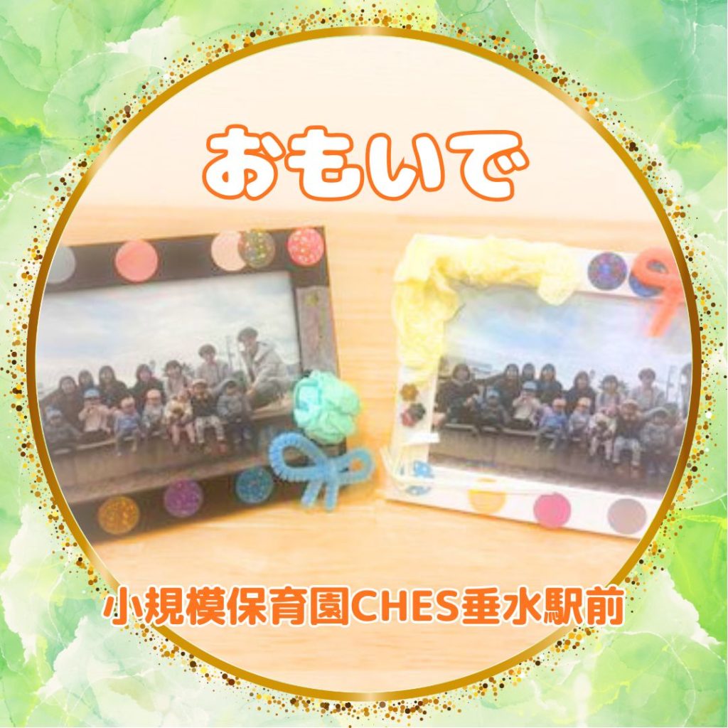 小規模保育園CHES垂水駅前の思い出作りでは、先日の「お別れ遠足」の写真立ての装飾をしました。シール、モール、花紙、マスキングテープ等を用いて自分たちで飾り付けを楽しみました。大きいお友だちは手先を器用に使い「この色がいい!」「ここに貼る!」とフレームの隙間なくかわいく仕上げる姿がありましたよ。