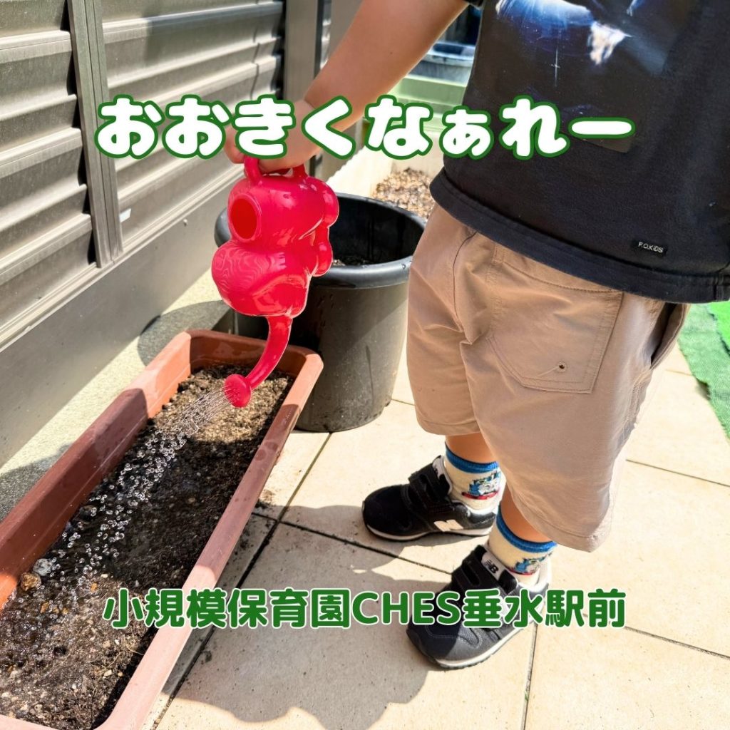 最後に子どもたちとしっかり土をかぶせてから「大きくなあれ」の願いを込めて、お水をたっぷりあげました💧