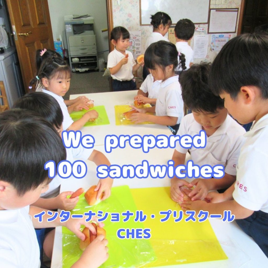 先月29日、「プリ・クラス」は新年度が始まって以来の100日を無事迎えることができました。これまでみんなで楽しく過ごすことができたお祝いに、100個のサンドウィッチを作ってランチ・パーティを開催することに。