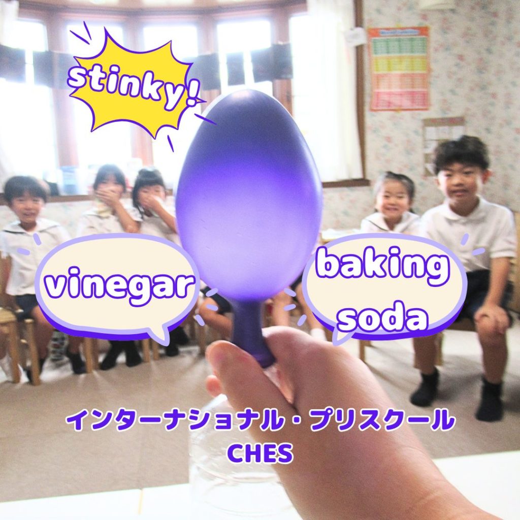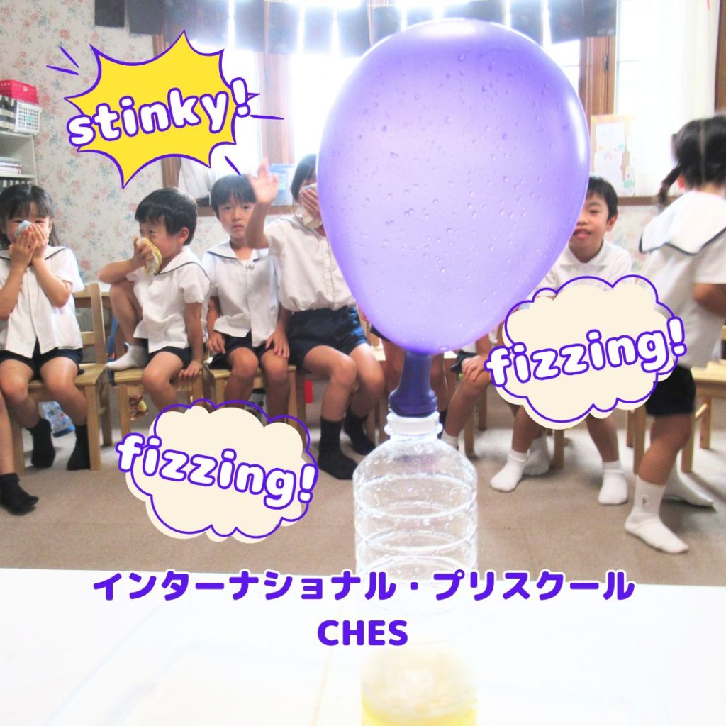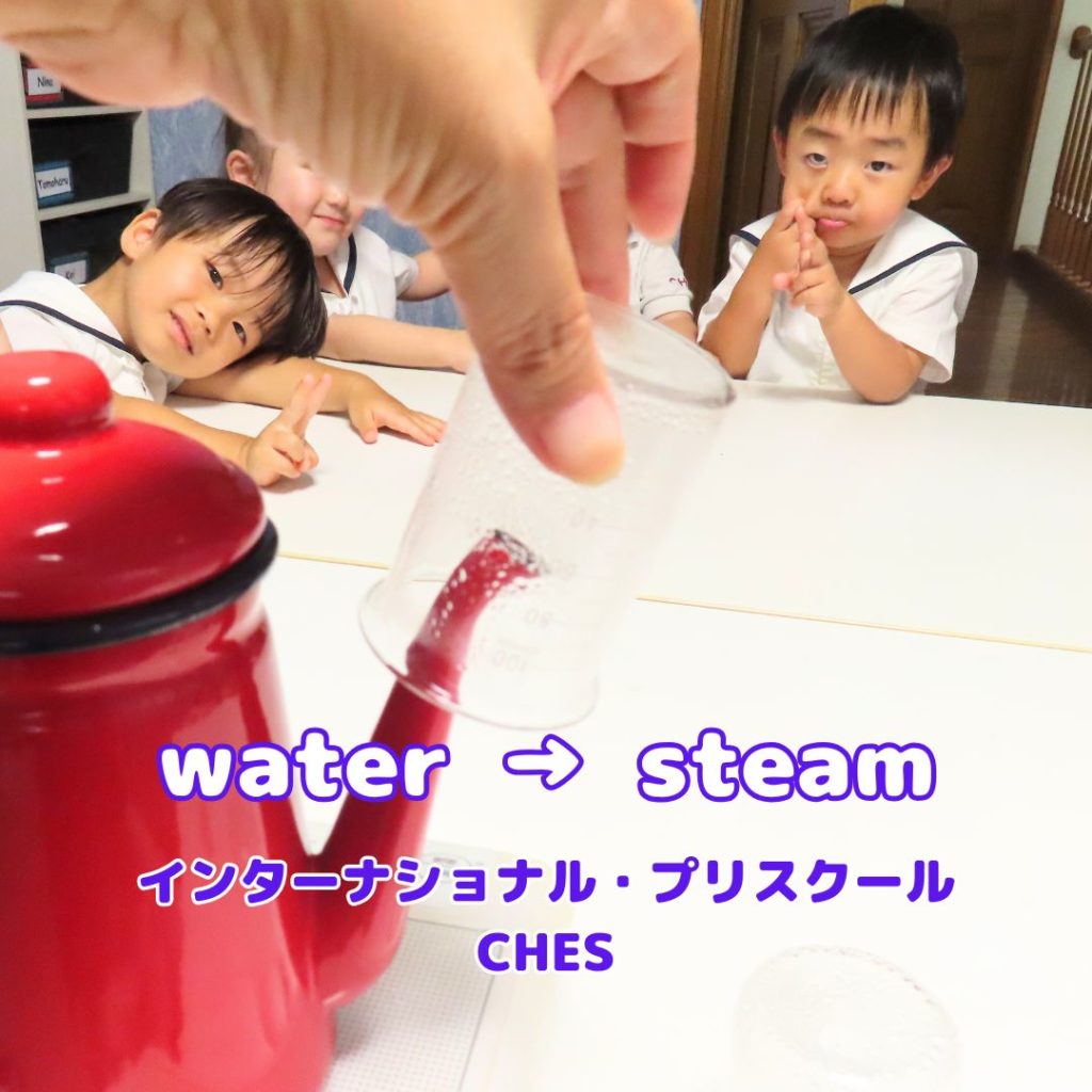 氷から水、そして水蒸気へと変化する様子から「個体・液体・気体」を体感。さらに実際に「気体」を発生させる実験では、みんな大盛り上がり。子どもたちにとっては、まさに「It was like magic!」を経験できたようです。
