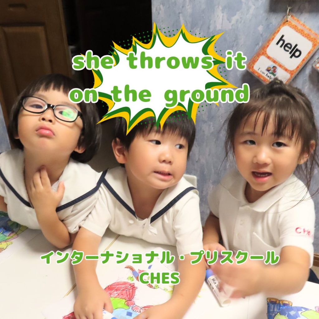 この状況でどうするのかが正しいかったのかを話し合いました。すると子どもたちはすぐに、ゴミ箱に捨てるべきだったと言いました。それから、特別なマークがついたゴミ箱を見せることに。私たちはこれを「リサイクルサイン」と呼んでいます。