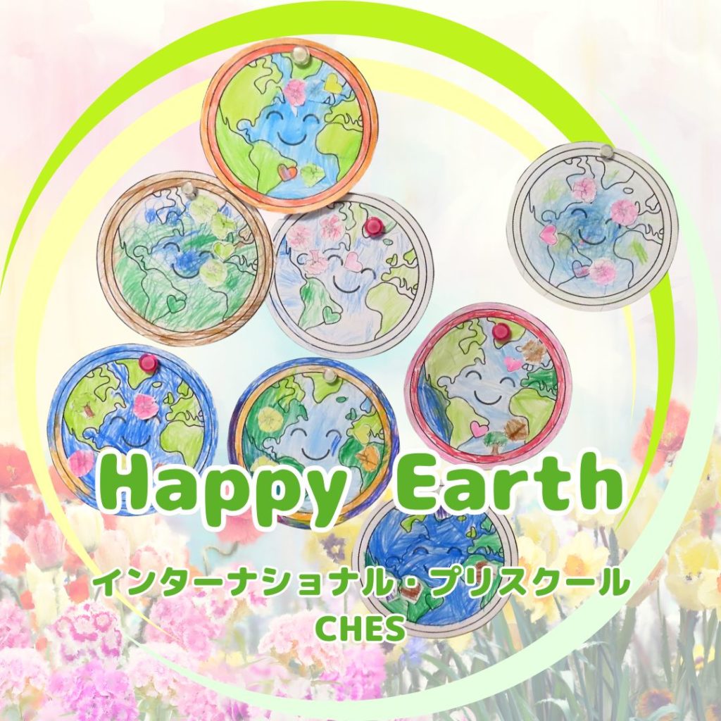 これが、みんなで作った「ハッピーアース」です。花やハート、木で飾られています💚 今週後半には、ゴミが多すぎると地球がどう感じるのかについても学びます。